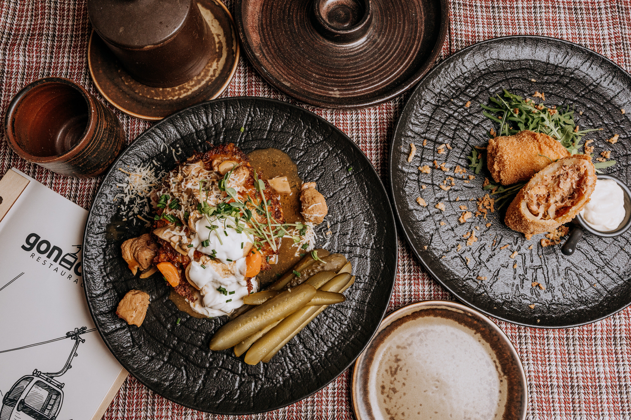 | Placek po krynicku z gulaszem wieprzowym, korzennymi warzywami, kiszonym ogórkiem, śmietaną i regionalnym wędzonym serem 350g | 48 zł |