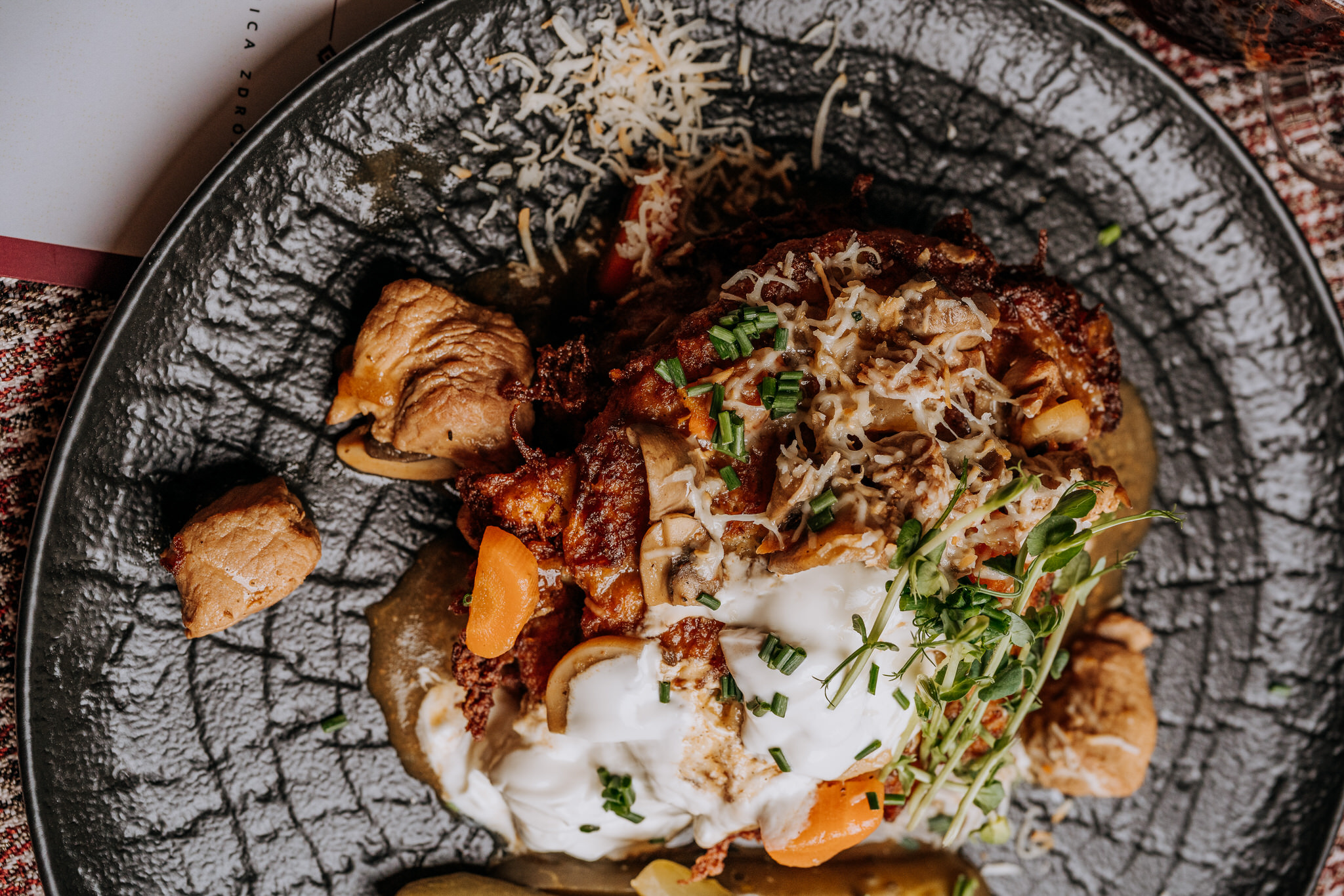 | Moskol góralski z sosem grzybowym, bryndzą i dzikimi ziołami 220g | 22 zł |